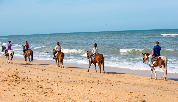 Our beach rides take place in Palm Coast, 45 minutes north of Daytona Beach. • Beach, trail, state park, and custom tours • Rides are scheduled according to low tide. • Minimum of two riders or two hours is required. AVAILABLE 7 DAYS PER WEEK. • Pricing: Beach rides are $125 per person per hour.